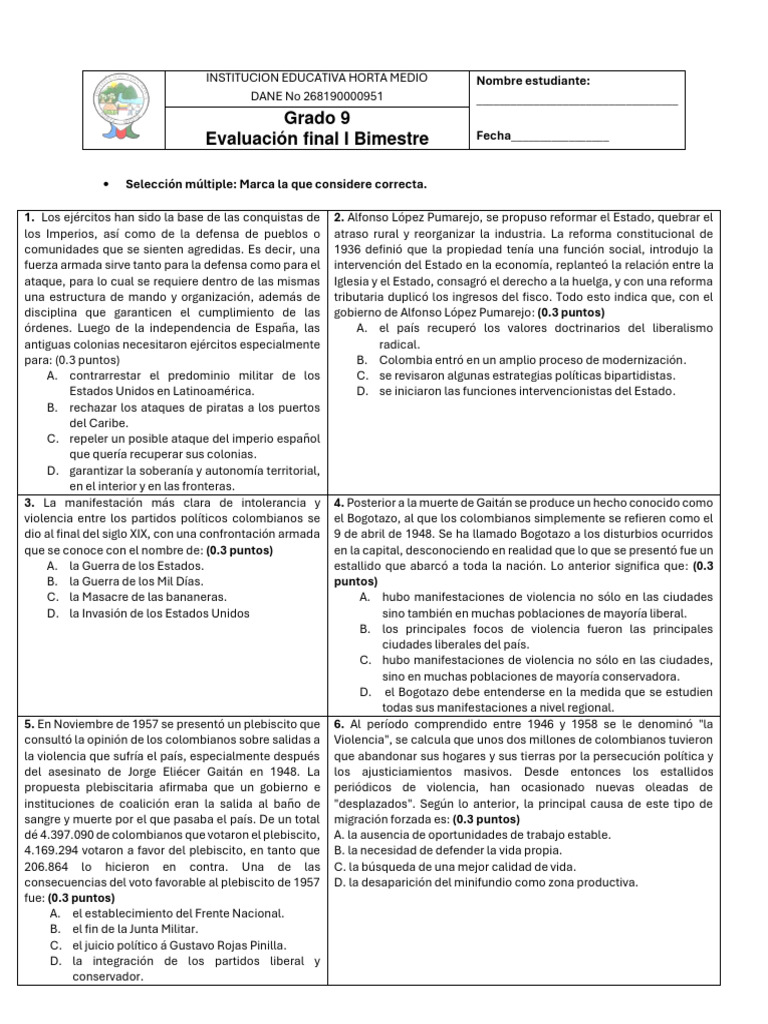 5. En Noviembre de 1957 se presentó un plebiscito que 6. Al período comprendido entre 1946 y 1958 se le denominó "la