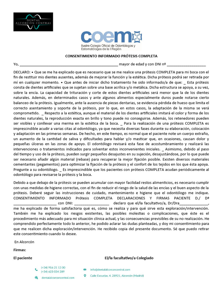 CONSENTIMIENTO INFORMADO PRÓTESIS COMPLETA
