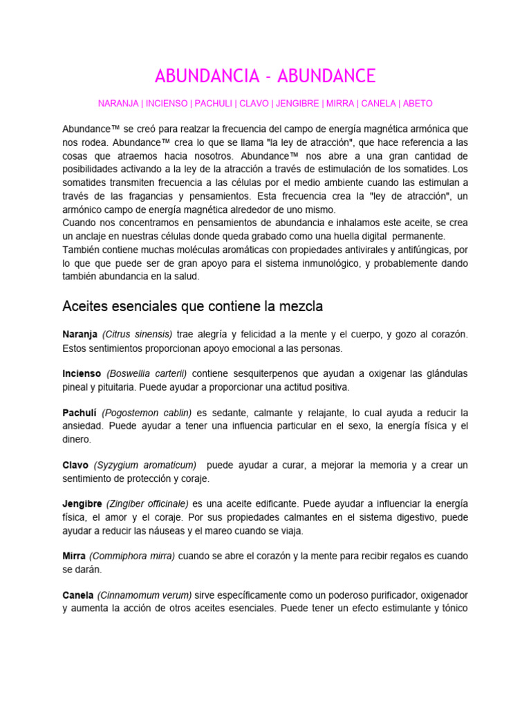 Cuando nos concentramos en pensamientos de abundancia e inhalamos este aceite, se crea