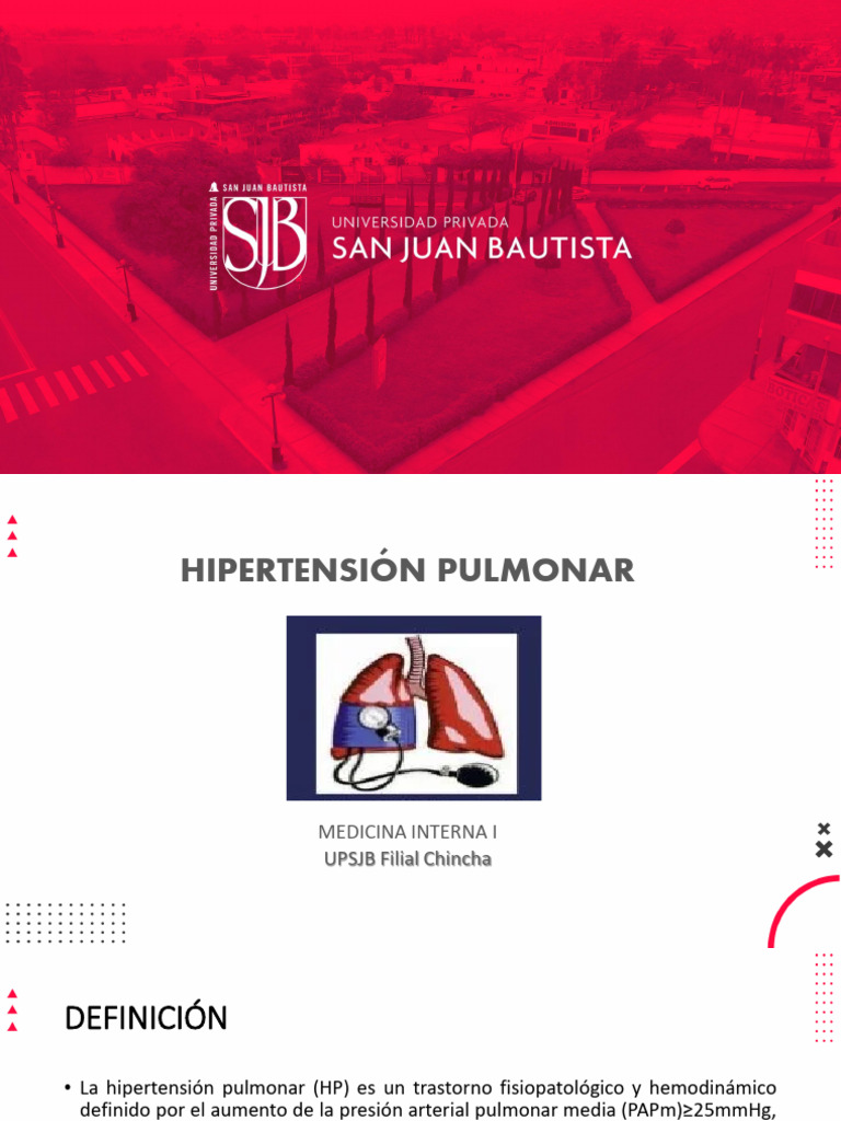 • La hipertensión pulmonar (HP) es un trastorno fisiopatológico y hemodinámico