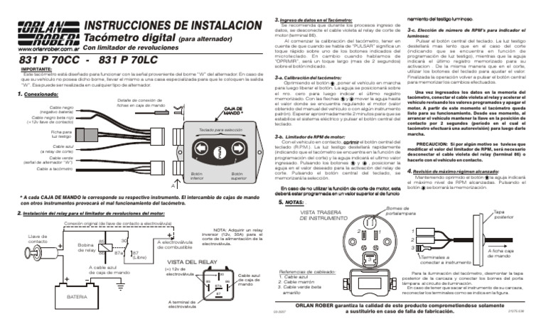 memorizado. Con las flechas.....y mover la aguja hasta tacómetro, conectar el cable violeta al relay y acelerar el