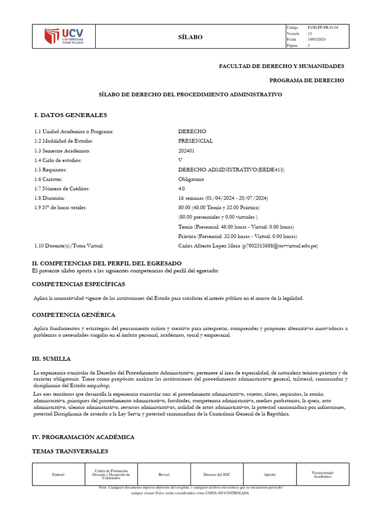 SÍLABO DE DERECHO DEL PROCEDIMIENTO ADMINISTRATIVO