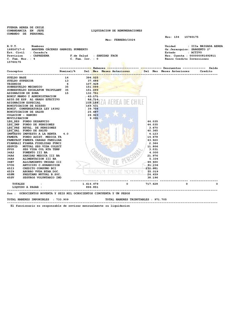 16856717-0 ARAVENA CÁCERES GABRIEL HUMBERTO Gr.Jerarquico: SARGENTO 2º