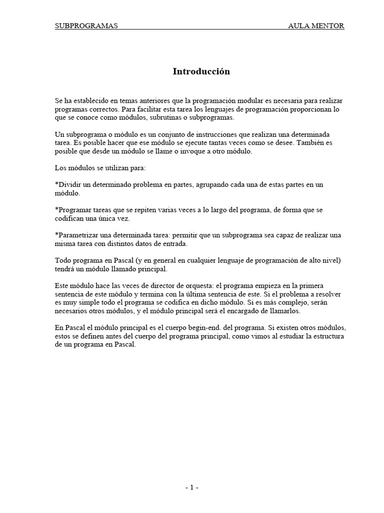 En Pascal el módulo principal es el cuerpo begin-end. del programa. Si existen otros módulos,