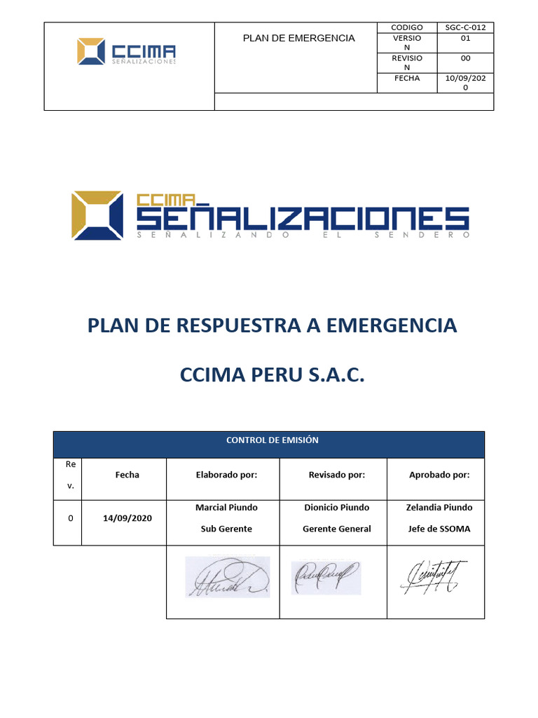 El Plan cuenta con el apoyo de la Gerencia General de CCIMA PERÚ SAC en