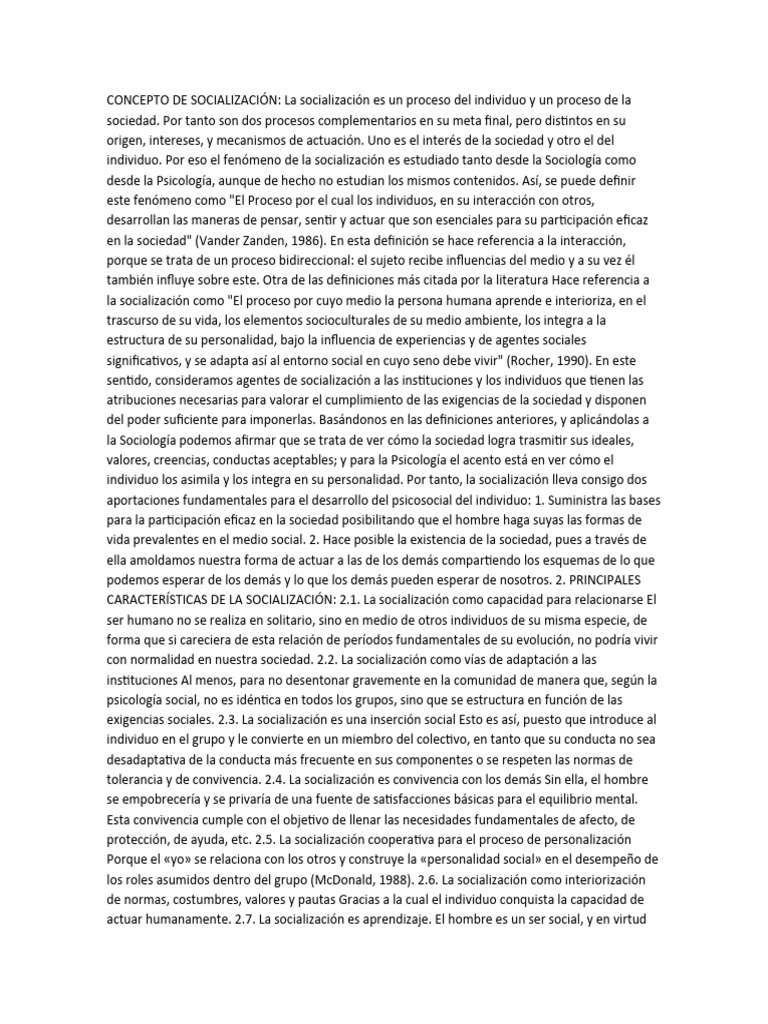 Por lo tanto, la socialización es un proceso inacabable, que se inicia en la 1ª