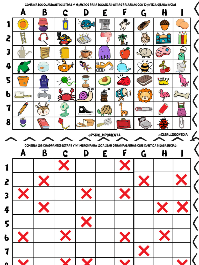 combina los cuadrantes letras y números para localizar otras palabras con idéntica SÍLABA INCIAL