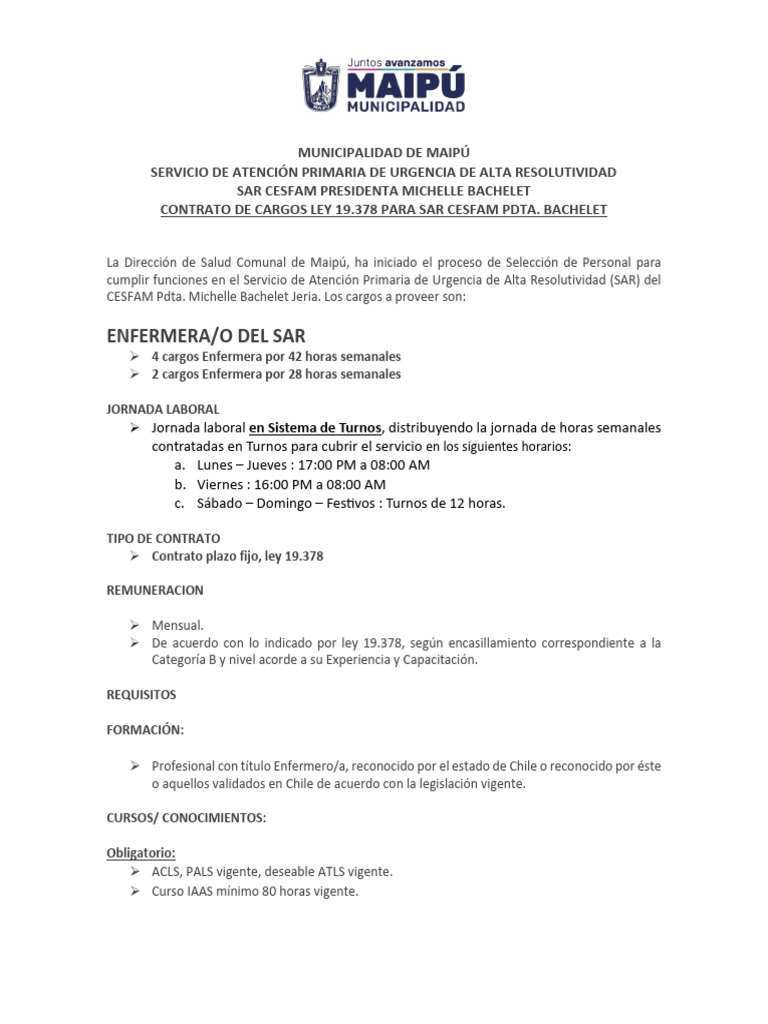 La Dirección de Salud Comunal de Maipú, ha iniciado el proceso de Selección de Personal para