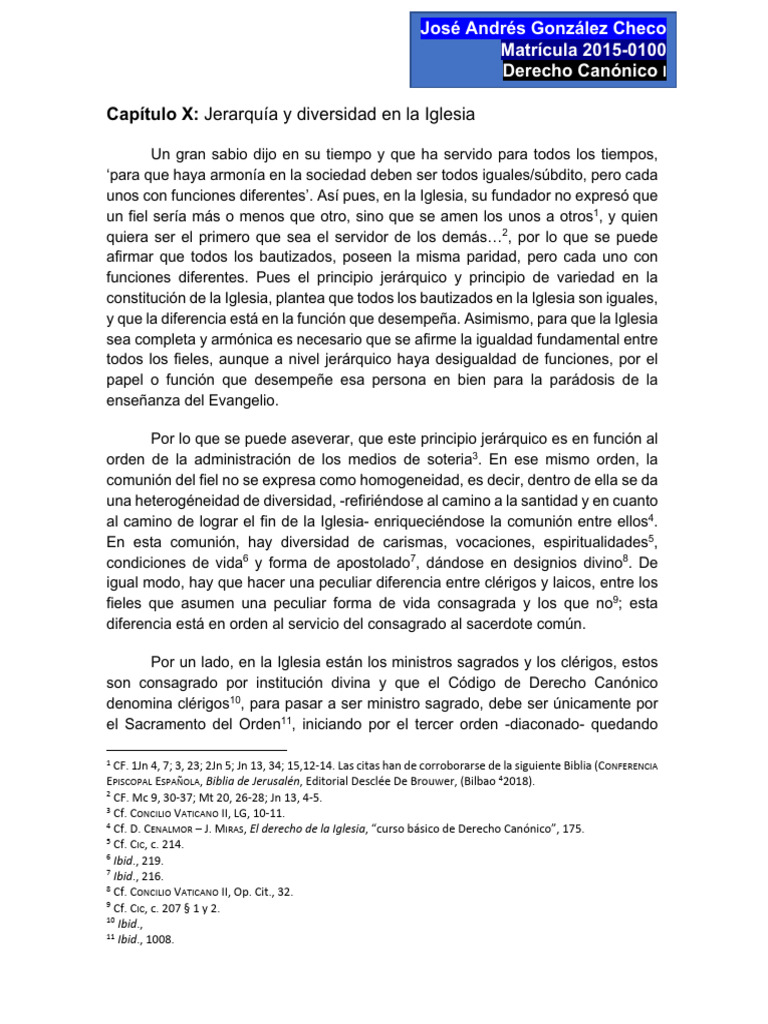 Capítulo X: Jerarquía y diversidad en la Iglesia