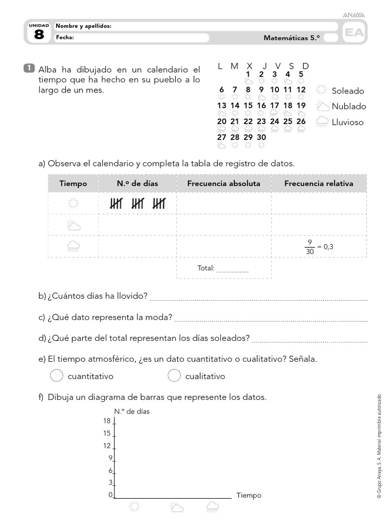 e) El tiempo atmosférico, ¿es un dato cuantitativo o cualitativo? Señala.