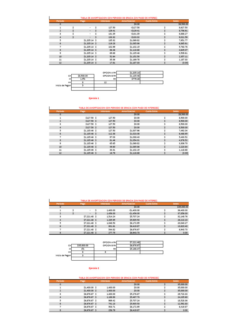 TABLA DE AMORTIZACION CON PERIODO DE GRACIA (SIN PAGO DE INTERES)