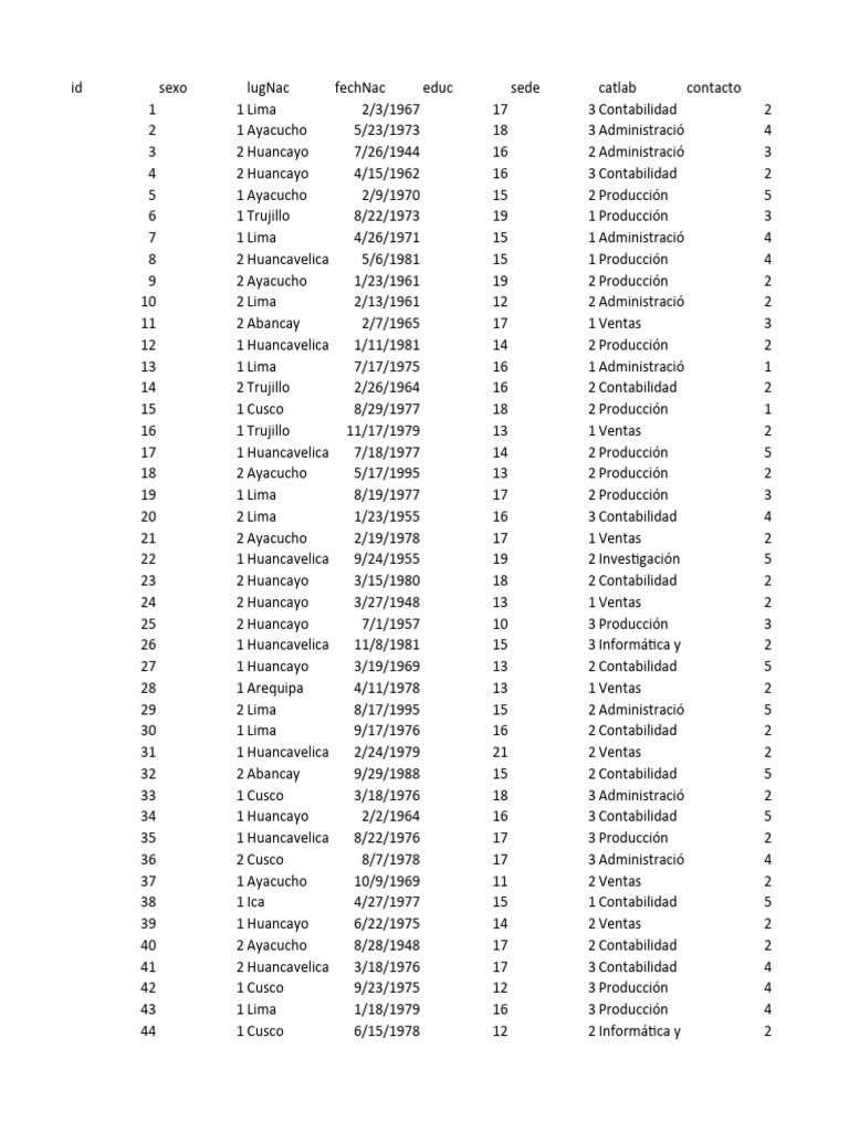 44 1 Cusco 6/15/1978 12 2 Informática y 2