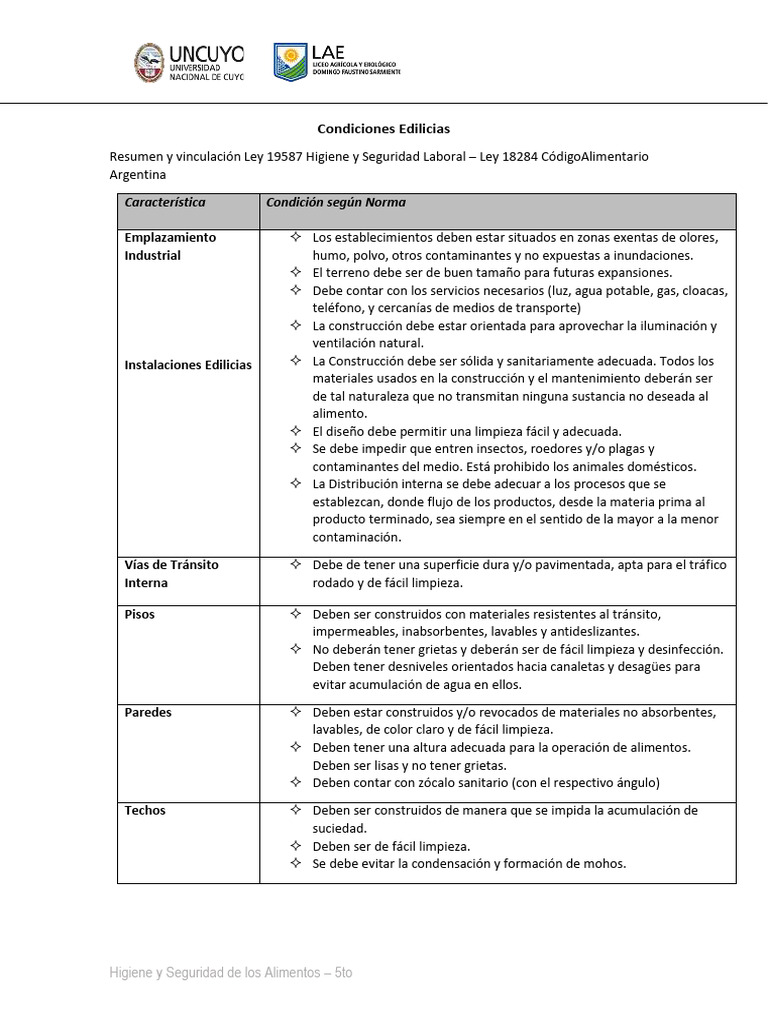 Resumen y vinculación Ley 19587 Higiene y Seguridad Laboral – Ley 18284 CódigoAlimentario