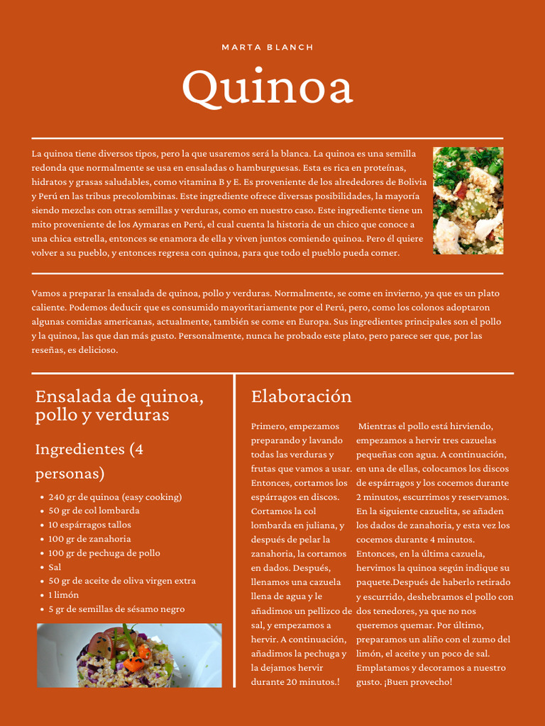 y la quinoa, las que dan más gusto. Personalmente, nunca he probado este plato, pero parece ser que, por las