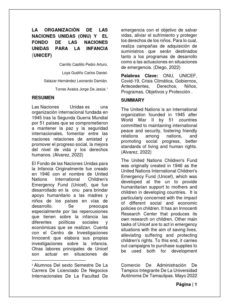 Key words: ONU, UNICEF, Covid-19, de antecedentes de la unicef, el