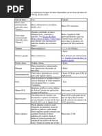 Las podemos ver en la siguiente tabla: