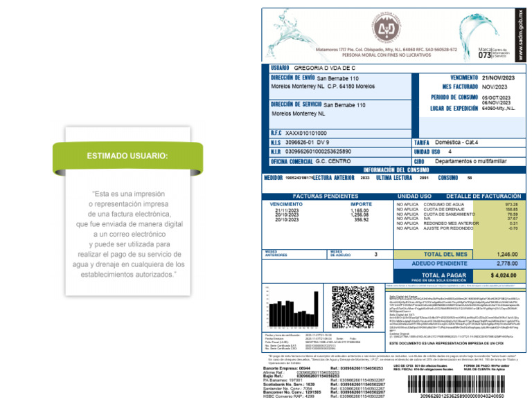 Morelos Monterrey NL C.P. 64180 Morelos MES FACTURADO NOV/2023