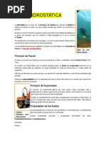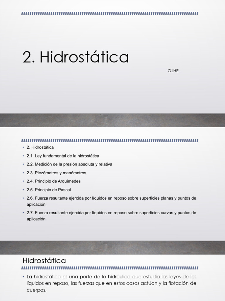 • La hidrostática es una parte de la hidráulica que estudia las leyes de los
