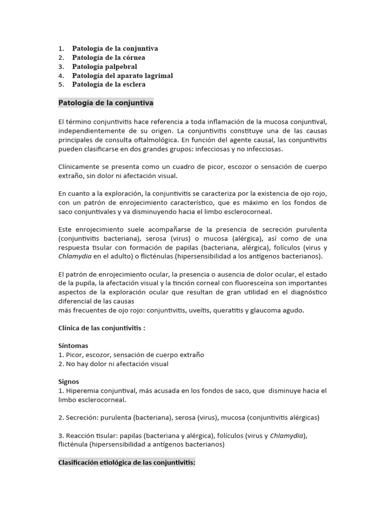 2. Secreción: purulenta (bacteriana), serosa (virus), mucosa (conjuntivitis alérgicas)