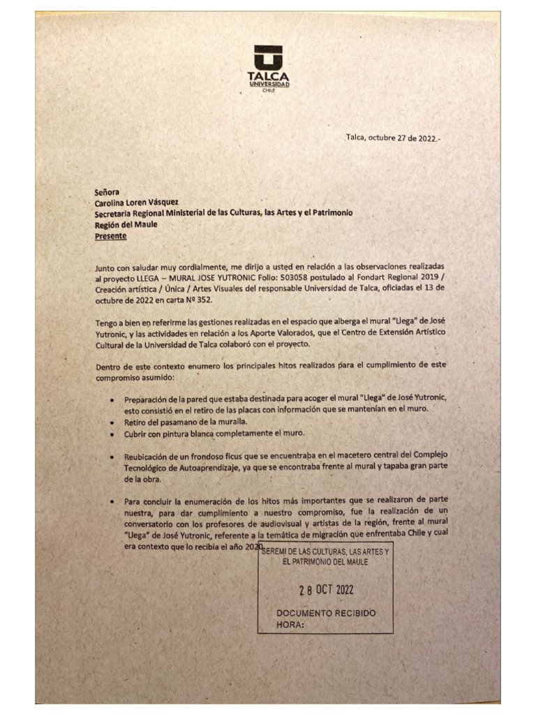 Proyecto LLEGA – MURAL JOSE YUTRONIC Folio: 503058 postulado al Fondart Regional