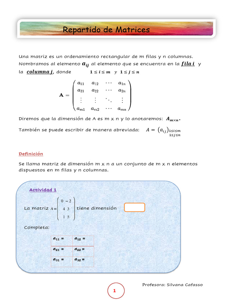 Se llama matriz de dimensión m x n a un conjunto de m x n elementos