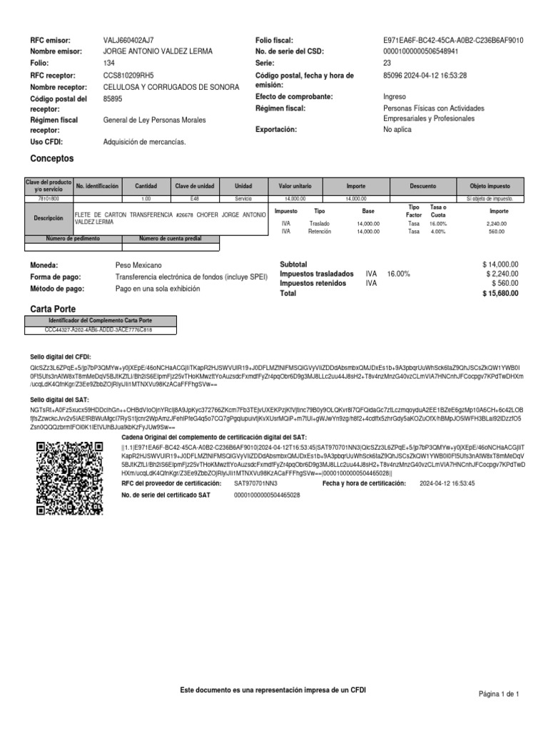 RFC del proveedor de certificación: SAT970701NN3 Fecha y hora de certificación: 2024-04-12 [Link]