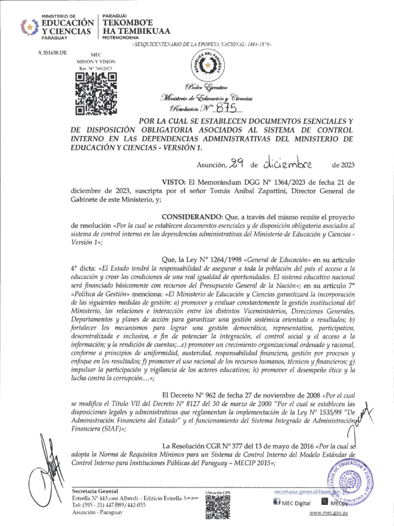 l".4.Política de Control Interno del MEC.