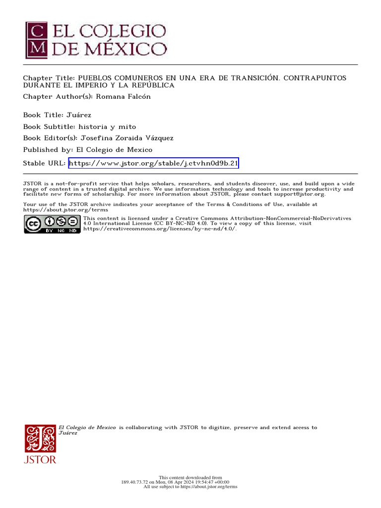 Chapter Title: PUEBLOS COMUNEROS EN UNA ERA DE TRANSICIÓN.