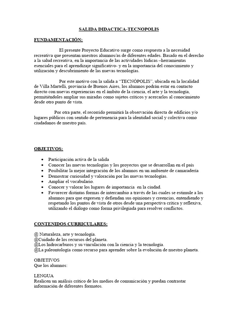 Por este motivo con la salida a “TECNÓPOLIS”, ubicada en la localidad