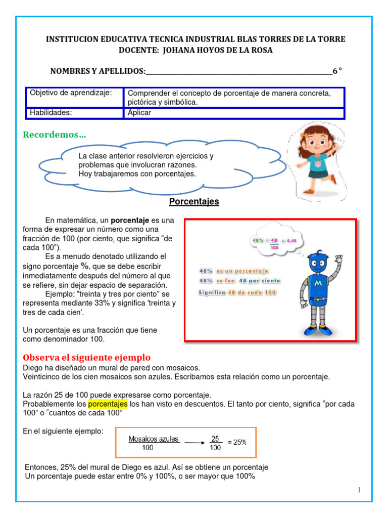 Objetivo de aprendizaje: Comprender el concepto de porcentaje de manera concreta,