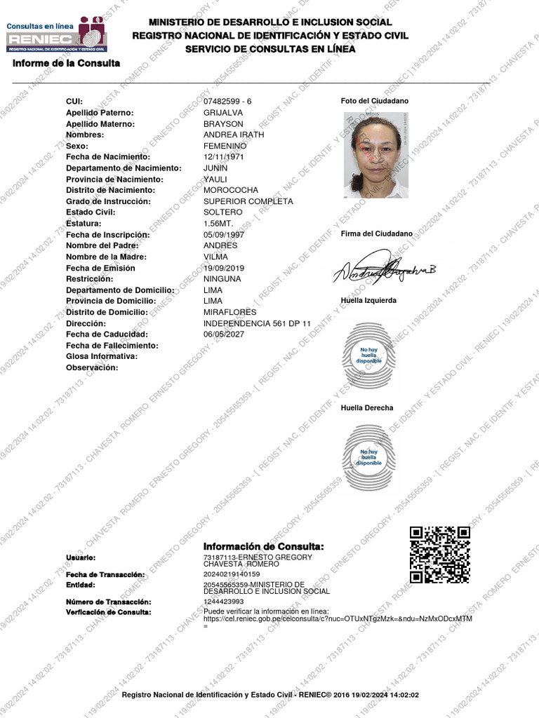 Informe de Consulta RENIEC 2024