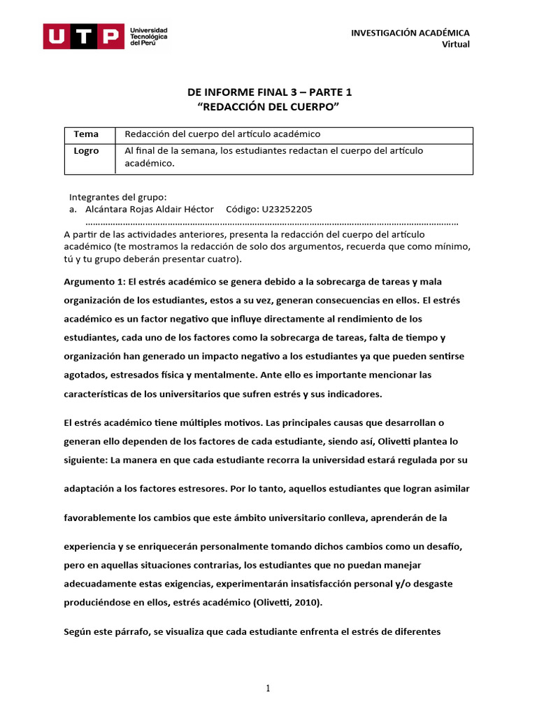 a. Alcántara Rojas Aldair Héctor Código: U23252205