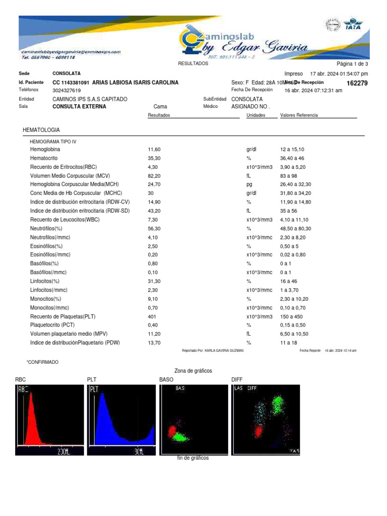 Id. Paciente CC 1143381091 ARIAS LABIOSA ISARIS CAROLINA Sexo: F Edad: 28A 10MNro.