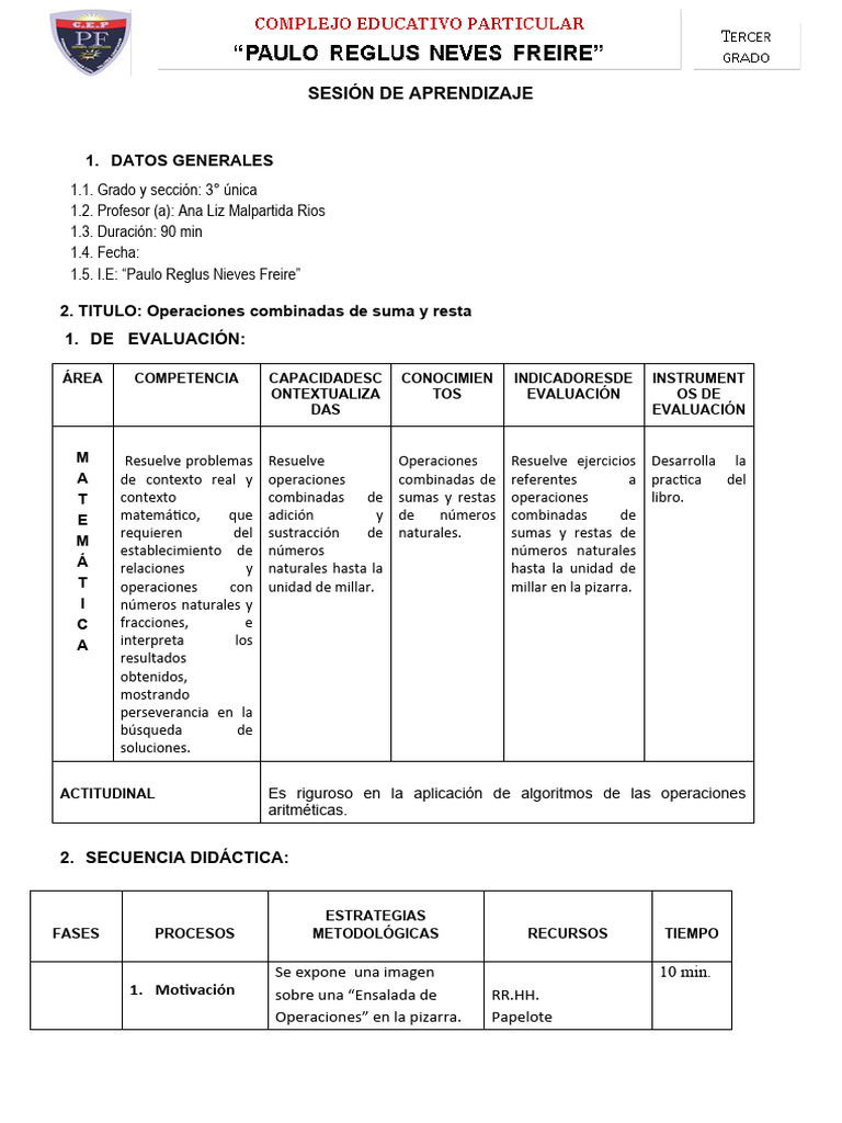 2. TITULO: Operaciones combinadas de suma y resta