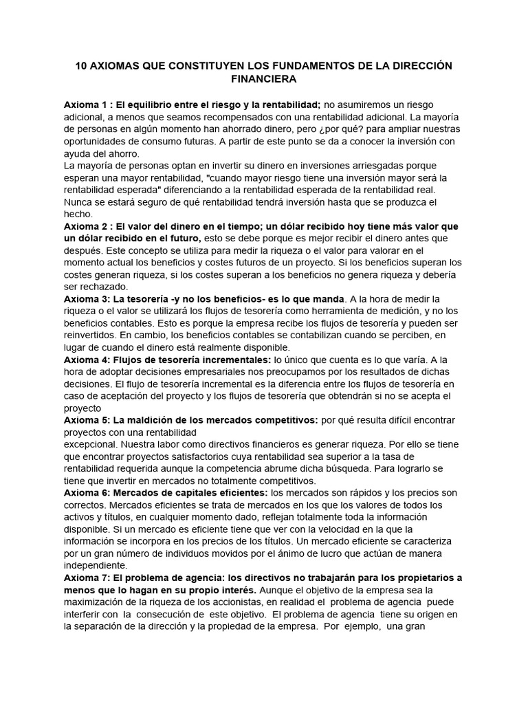 10 AXIOMAS QUE CONSTITUYEN LOS FUNDAMENTOS DE LA DIRECCIÓN