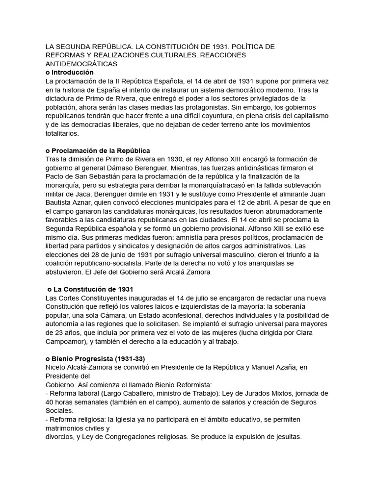 LA SEGUNDA REPÚBLICA. LA CONSTITUCIÓN DE 1931.