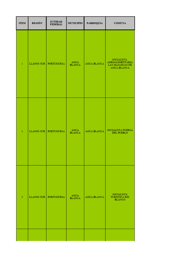 ITEM REGIÓN MUNICIPIO PARROQUIA COMUNA