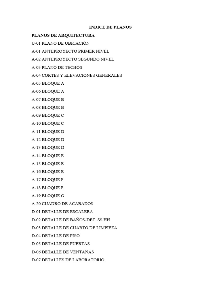INDICE DE PLANOS