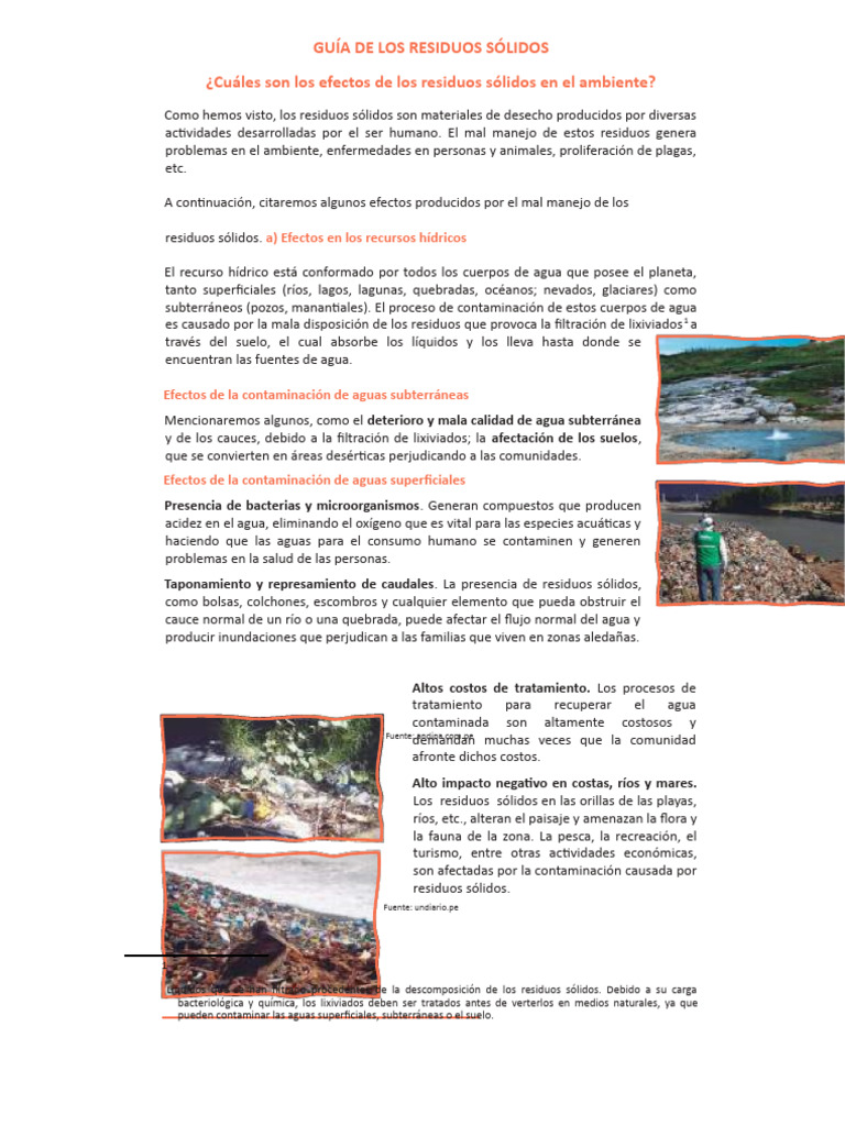 residuos sólidos. a) Efectos en los recursos hídricos
