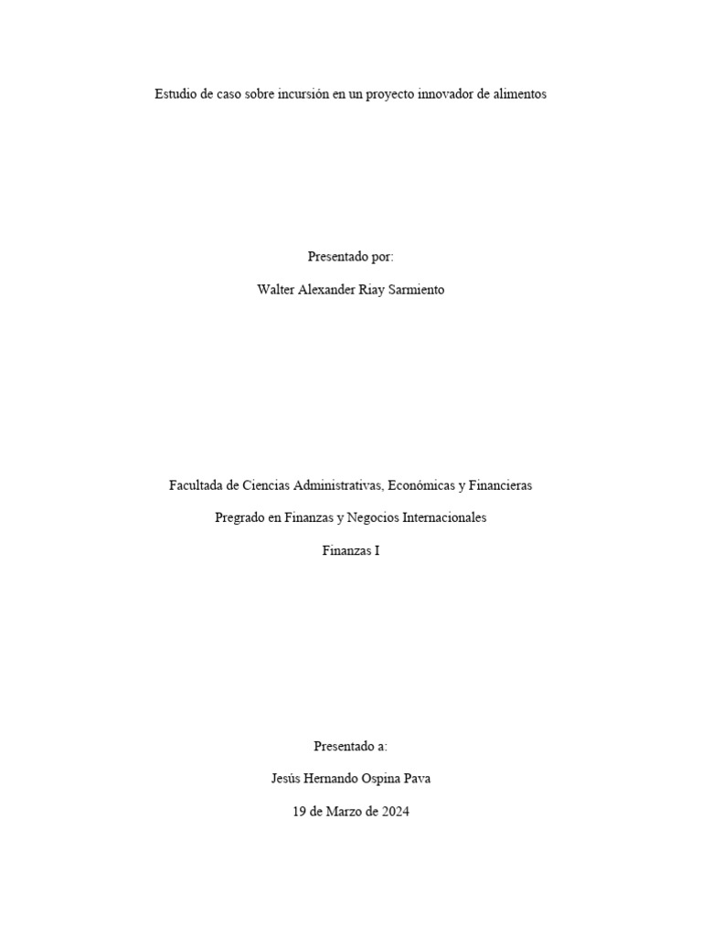 Estudio de caso sobre incursión en un proyecto innovador de alimentos