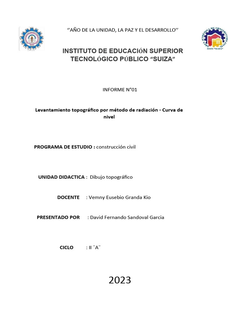 Señor docente de la unidad didáctica ´´Dibujo topográfico´´ del I.E.S.T.P.