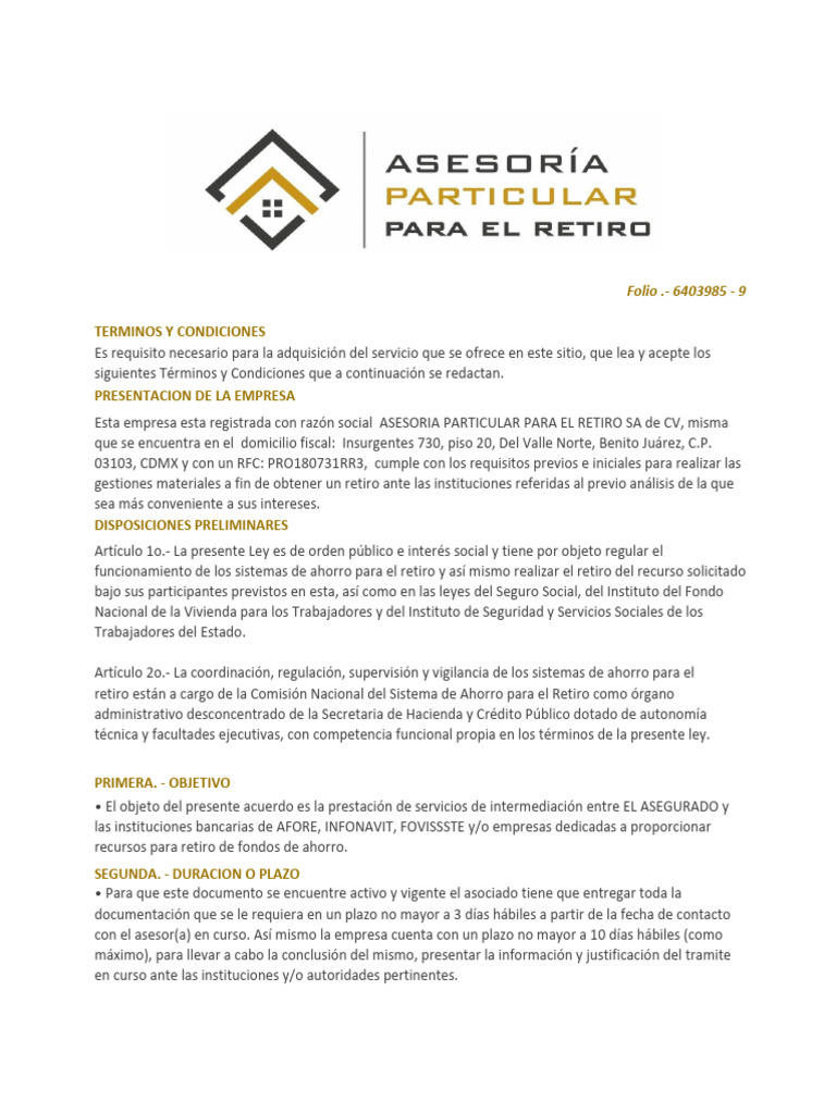 Esta empresa esta registrada con razón social ASESORIA PARTICULAR PARA EL RETIRO SA de CV, misma