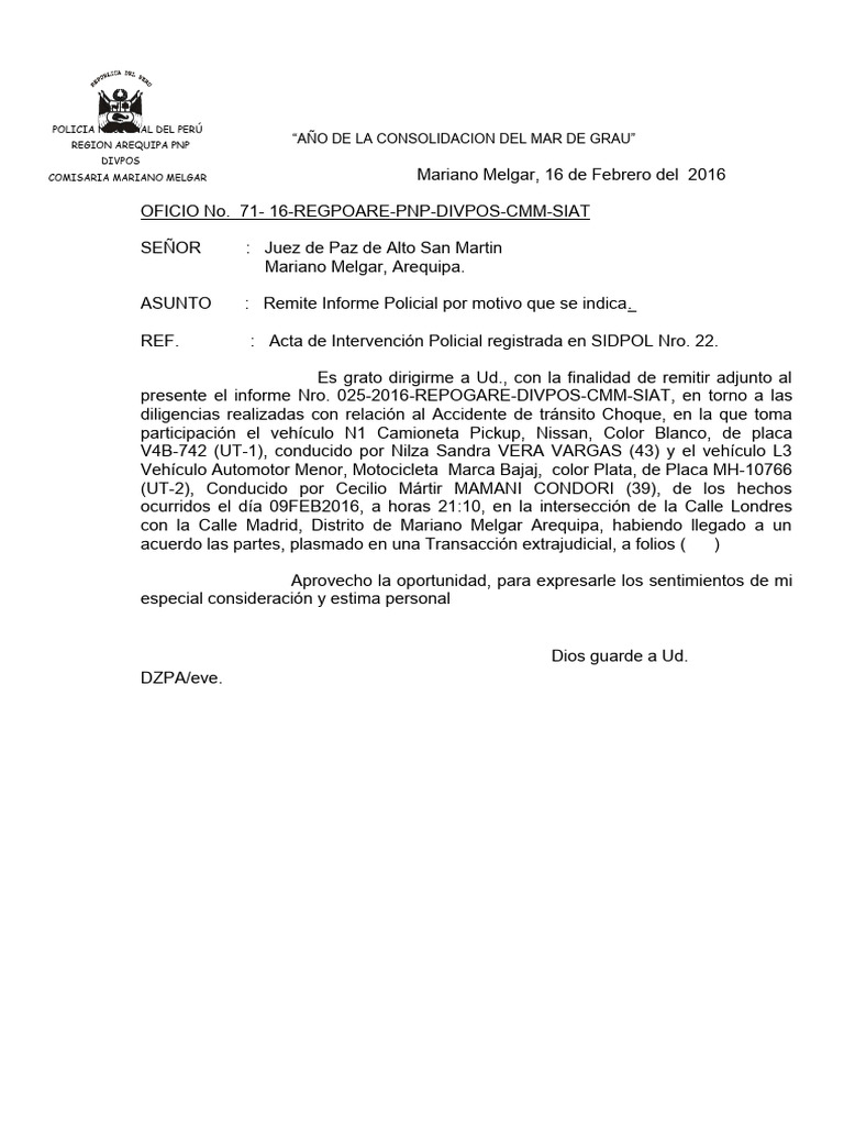 OFICIO No. 71- 16-REGPOARE-PNP-DIVPOS-CMM-SIAT