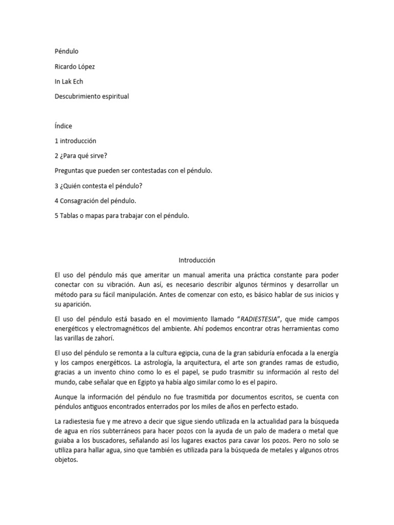 El uso del péndulo más que ameritar un manual amerita una práctica constante para poder