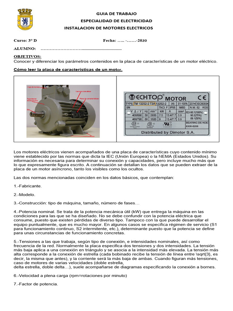 Los motores eléctricos vienen acompañados de una placa de características cuyo contenido mínimo