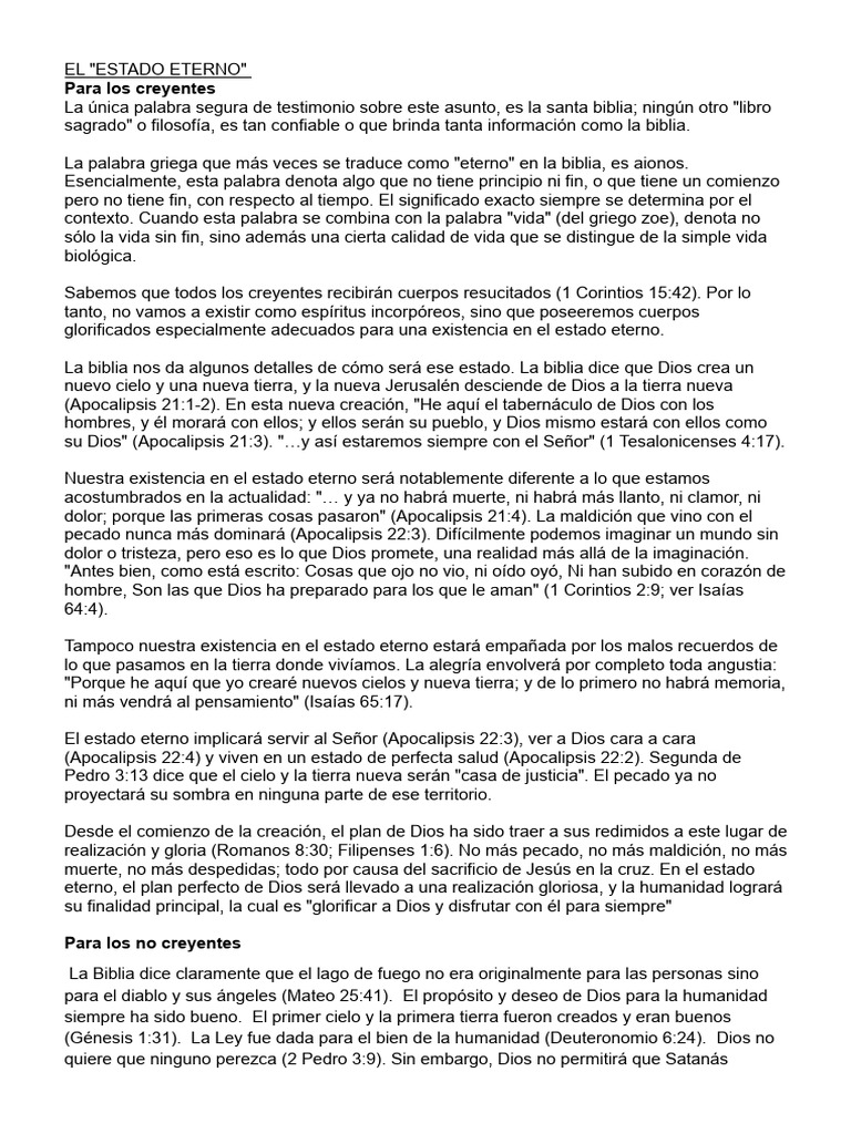 La biblia nos da algunos detalles de cómo será ese estado. La biblia dice que Dios crea un