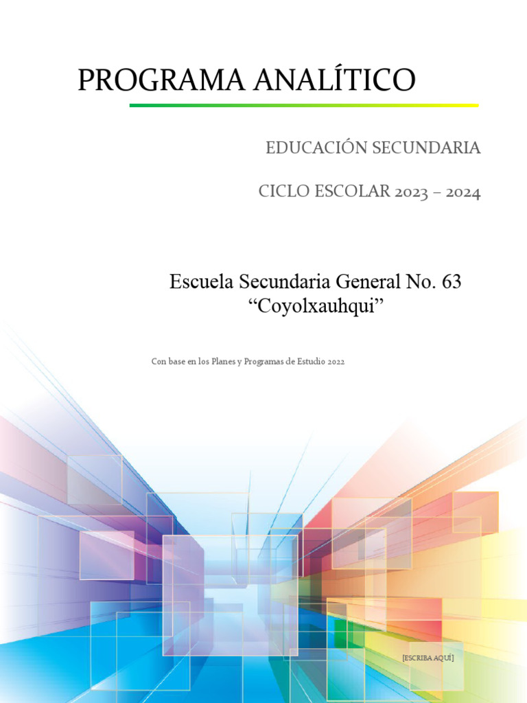 Programa Analítico Secundaria Coyolxauhqui