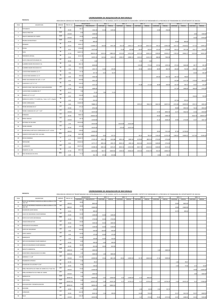 CRONOGRAMA DE ADQUISICIÓN DE MATERIALES