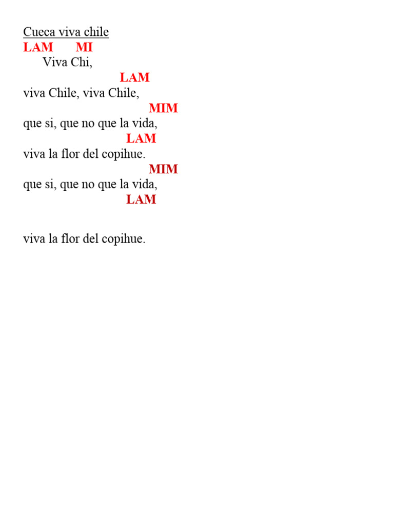 LAM MI Viva Chi, LAMviva Chile, viva Chile, MIMque si, que no que la vida, LAMviva la flor del copihue. MIMque si, que no que la vida, LAM