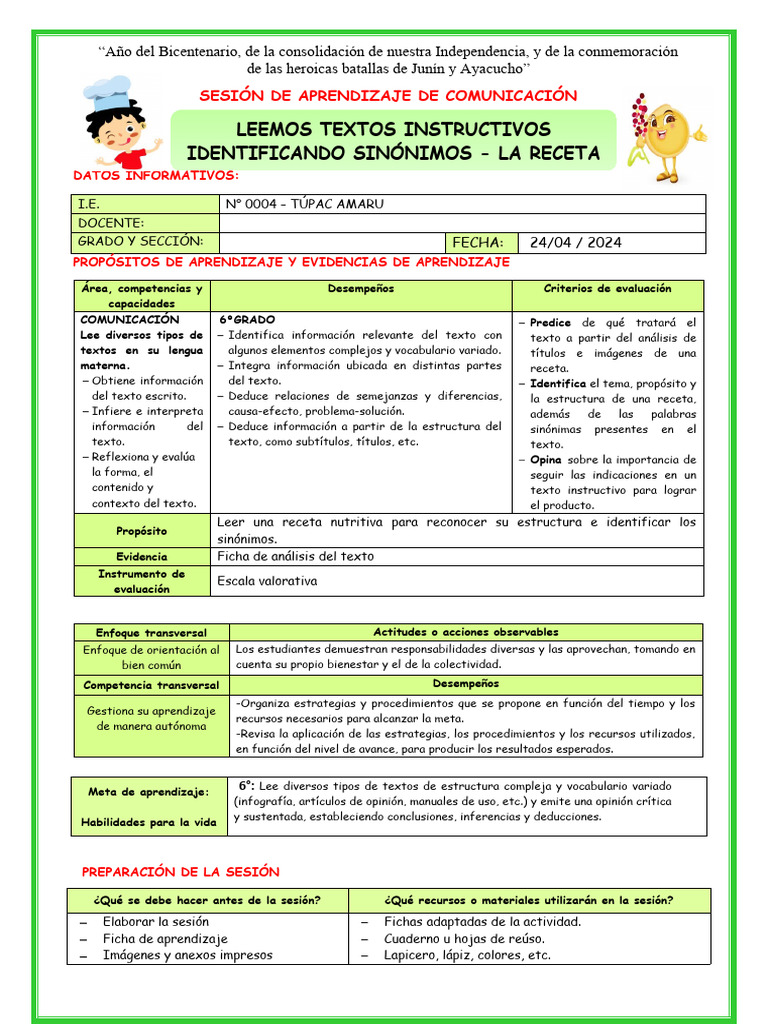 SESIÓN DE APRENDIZAJE DE COMUNICACIÓN